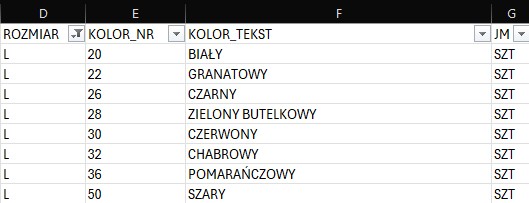 Kolumna E – KOLOR_NR – kolor produktu w schemacie numerycznym