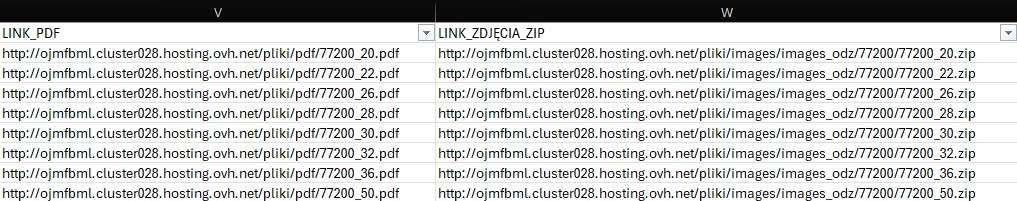 Kolumna W – LINK_ZDJĘCIA_ZIP – link do zdjęć do pobrania w formie spakowanej paczki ZIP