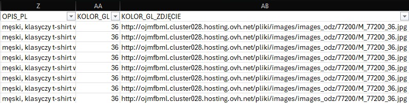 Kolumna F – KOLOR_TEKST – kolor produktu w schemacie tekstowym
